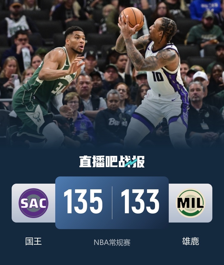 国王4人20+逆转雄鹿止3连败!字母哥复出26+11+8 拉文31分